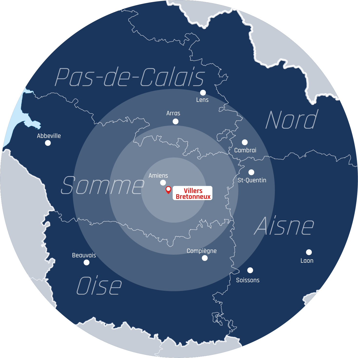 Situé à Villers-Bretonneux, 2M Concept-Aménagement est implanté au cœur du département de la Somme. Nous intervenons également dans les départements limitrophes.